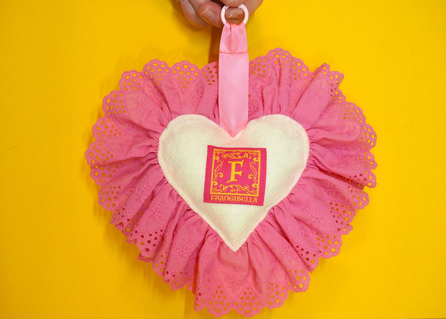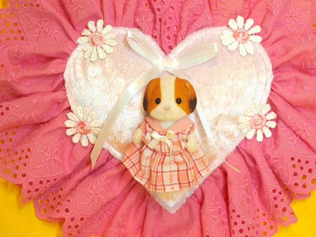 Introducing our Heart Bag Charm, a cute and stylish accessory perfect for adding a touch of whimsy to your handbag. This charm is not only adorable but also sustainable, as it is stuffed using wadding waste from our handbag production. Made with lace and a cute ribbon bow, this charm features a cute up cycled Sylvanian Family doll for a unique and charming touch. Stand out from the crowd with this eco-friendly and eye-catching accessory that will add a playful flair to any outfit. Perfect for adding a dash of fun to your bags or keys.