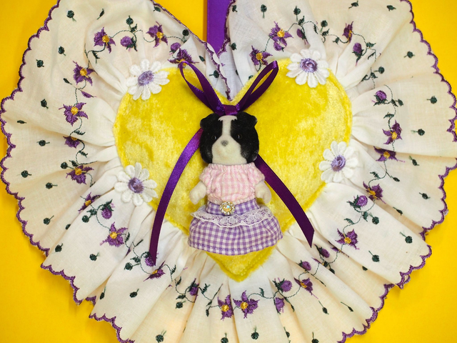 Dog Sylvanian Family Purple and Yellow Heart Bag Charm