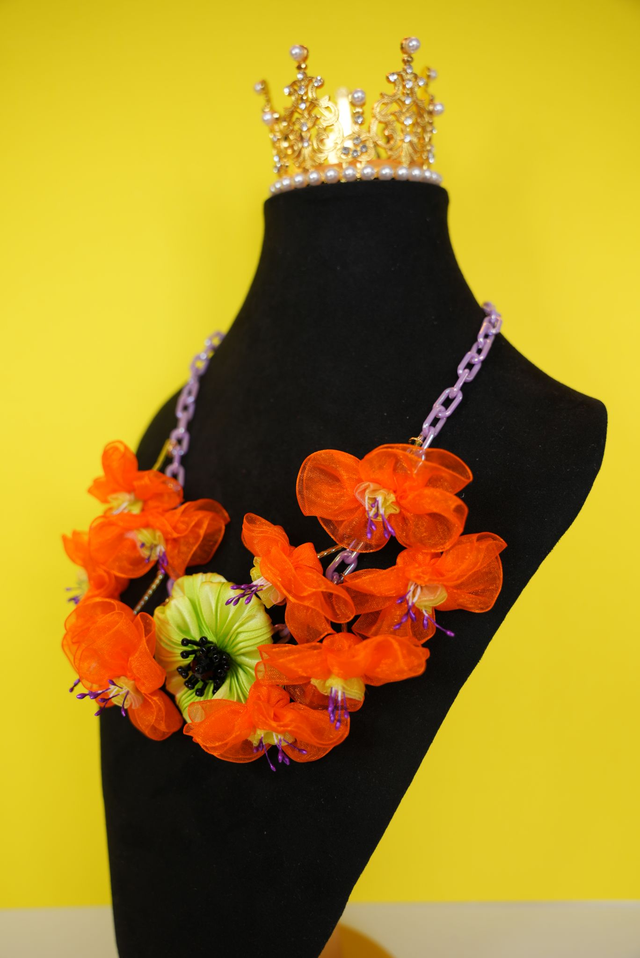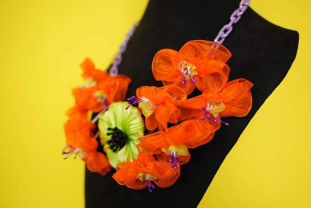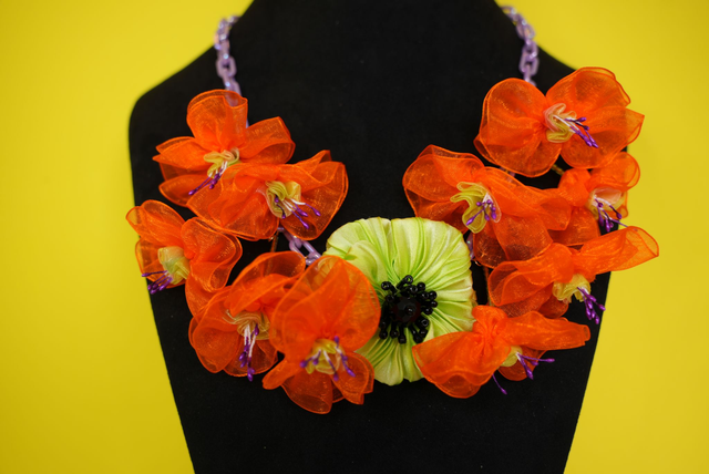 Fuchsia and Lime Silk Poppy Necklace