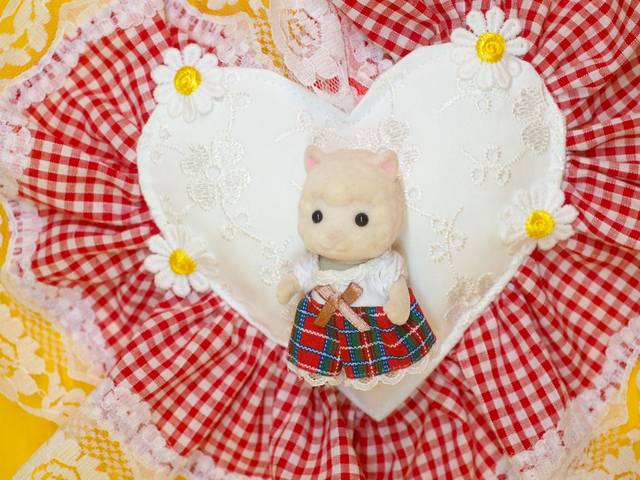 Sheep Sylvanian Family Gingham Heart Bag Charm