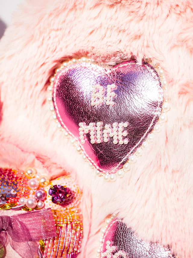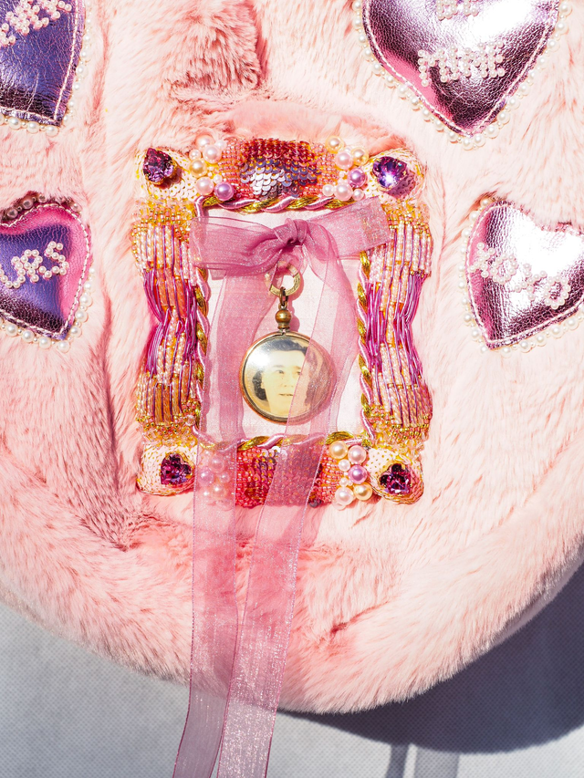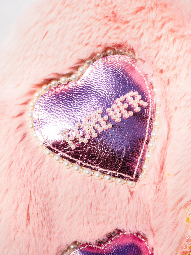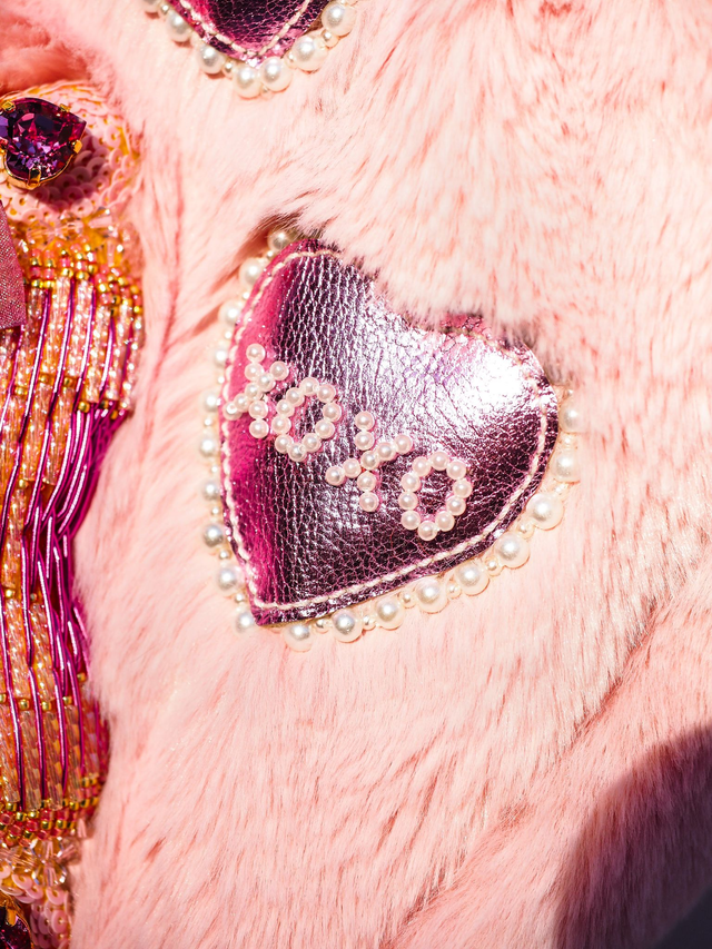 Sweetheart Locket Hand Embroidered Pink Faux Fur Bag
