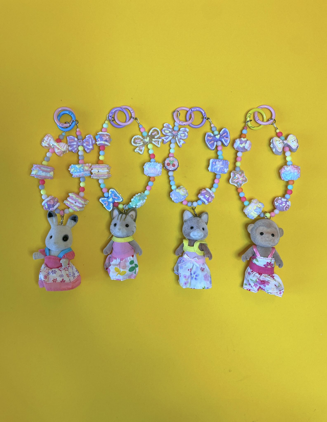 This Sylvanian Family Phone Strap is the perfect accessory for any fan of the adorable characters. Made with candy-like beads, this lucky dip surprise offers a sweet surprise with each purchase. The strap adds a cute touch to any phone, keys or bag, making it a great gift for both children and collectors alike. The high-quality construction ensures long-lasting durability, while the unique design is sure to turn heads and spark conversations. Ideal for personal use or gifting, this phone strap is a must-have for any Sylvanian Family fan.