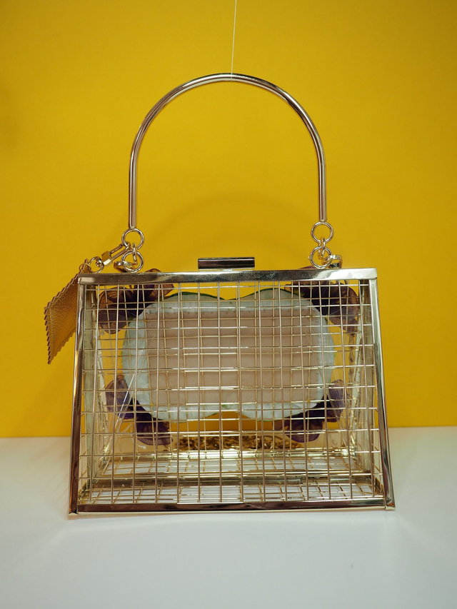 To My Dear Wife Fuchsia Open Wire Metal Cage HandBag